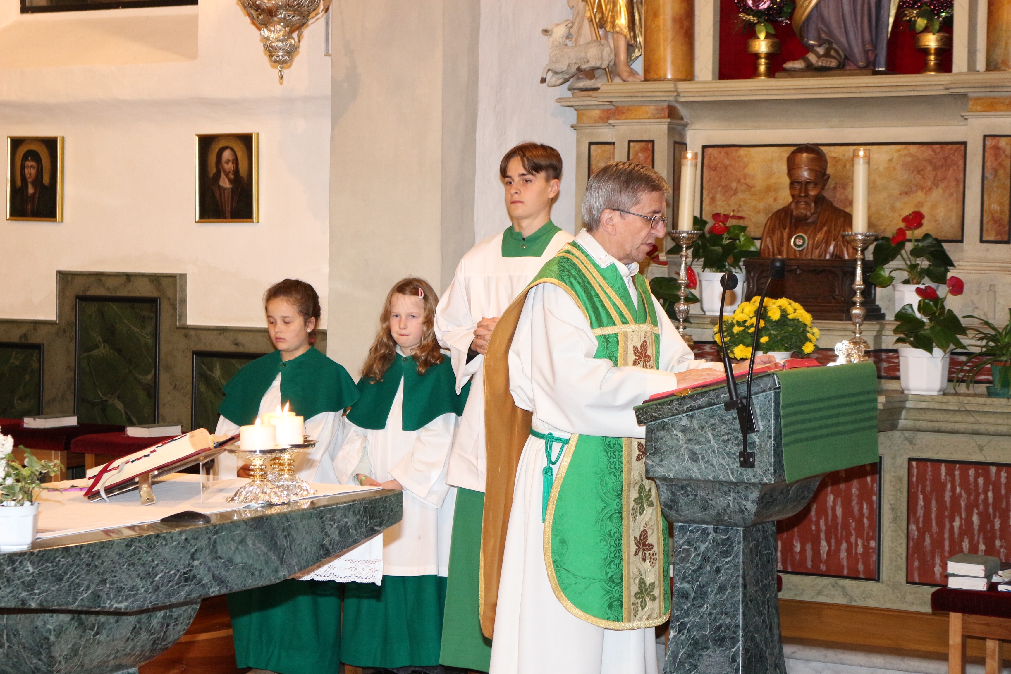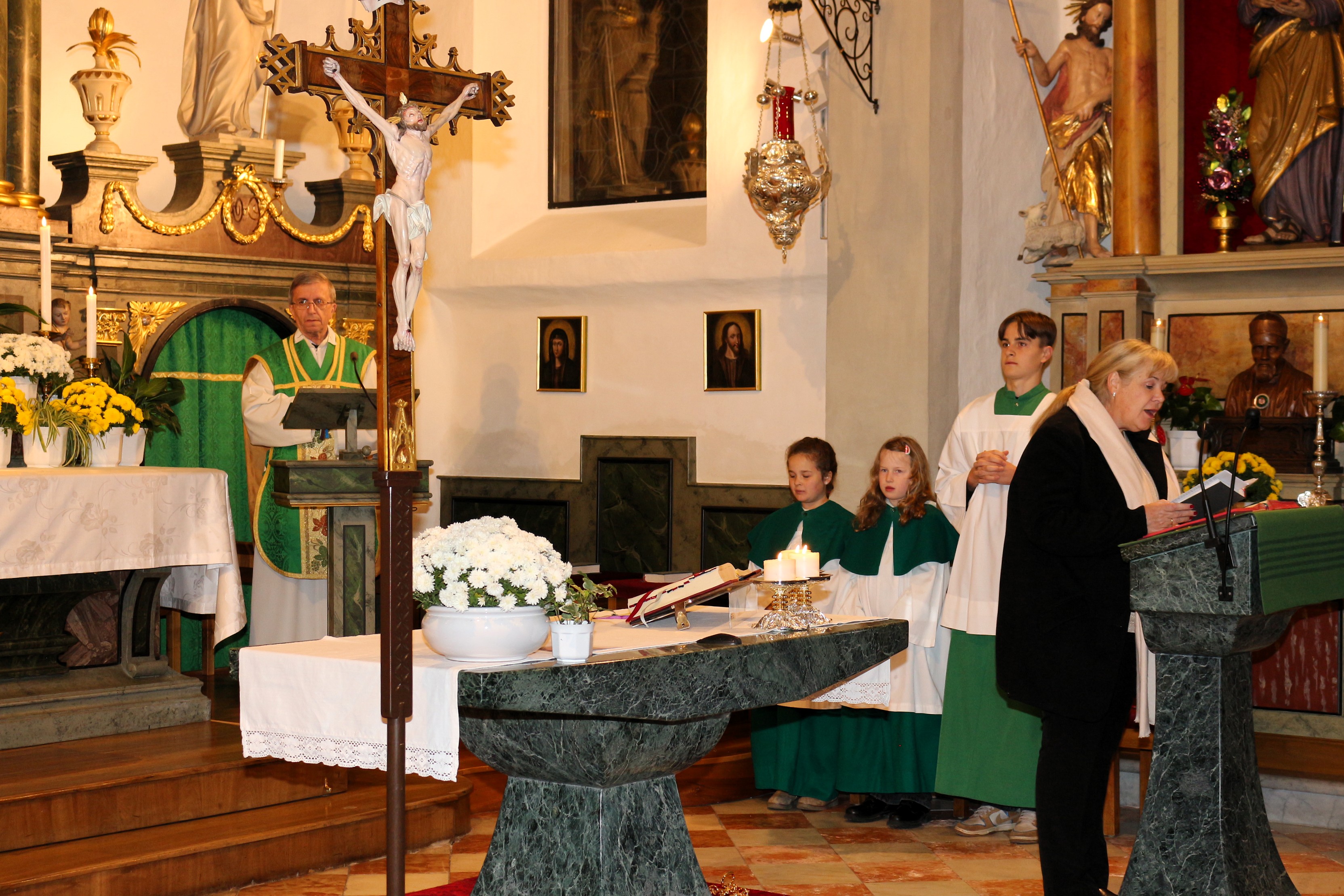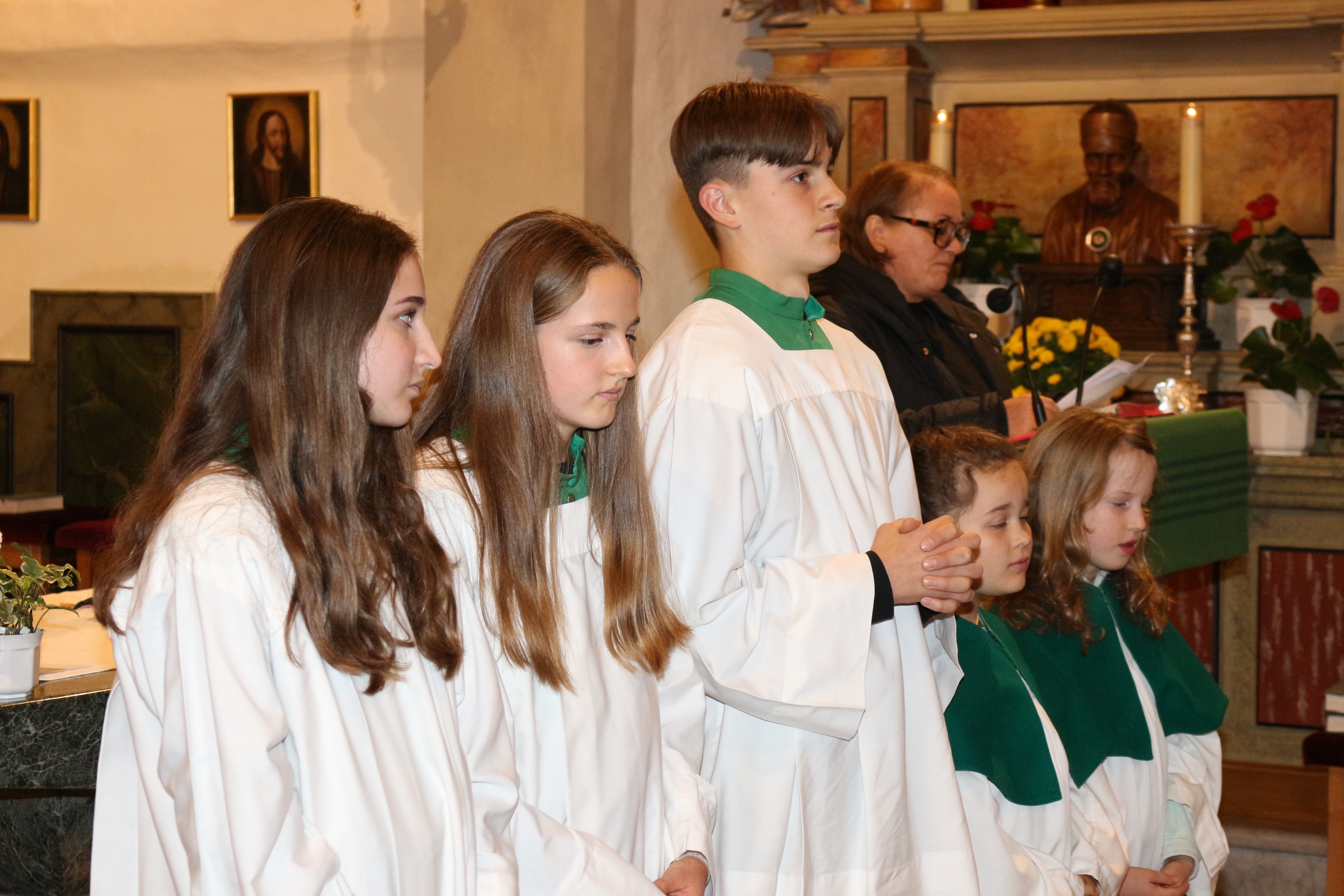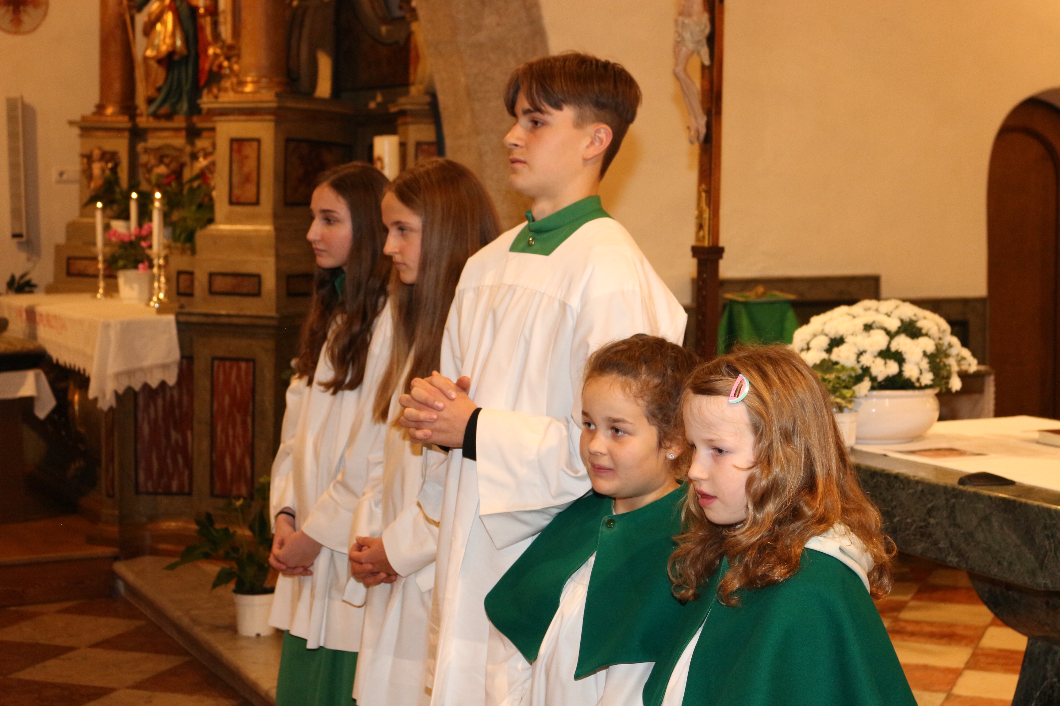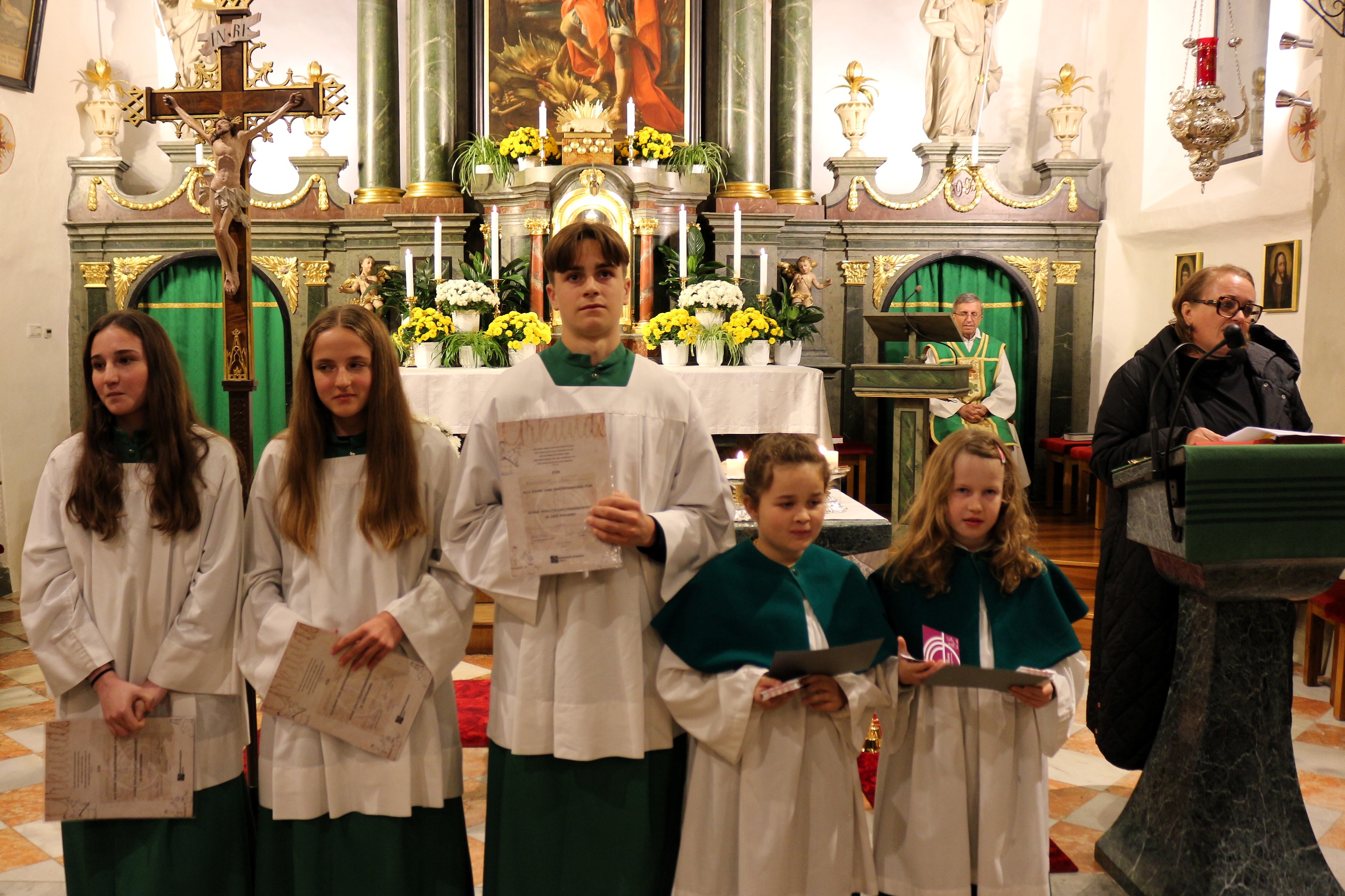 An Sonntag, 12. Oktober haben wir Erntedank gefeiert und in diesem Rahmen der langjährigen, nunmehr pensionierten Religionslehrerin Margith Watschinger eine kleine Ehrung zuteil kommen lassen. 33 Jahre lang hat sie in vahrn Religionsunterricht gehalten und in dieser Zeit stets auch die Kinder auf die Erstkommunion vorbereitet. Für diesen Dienst an den Kindern und an der Pfarrgemeinde sind wir ihr zu großem Dank verfplichtet.