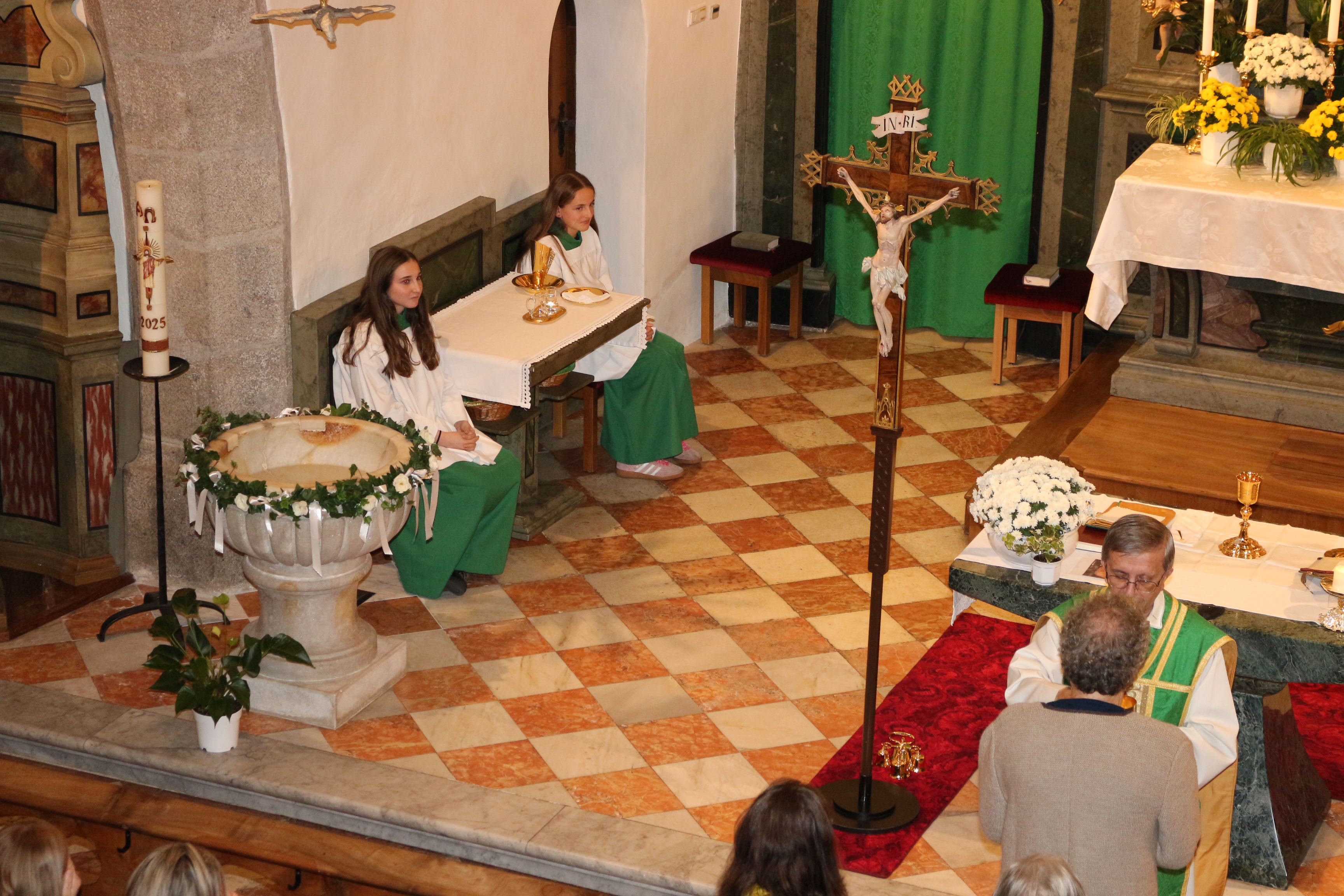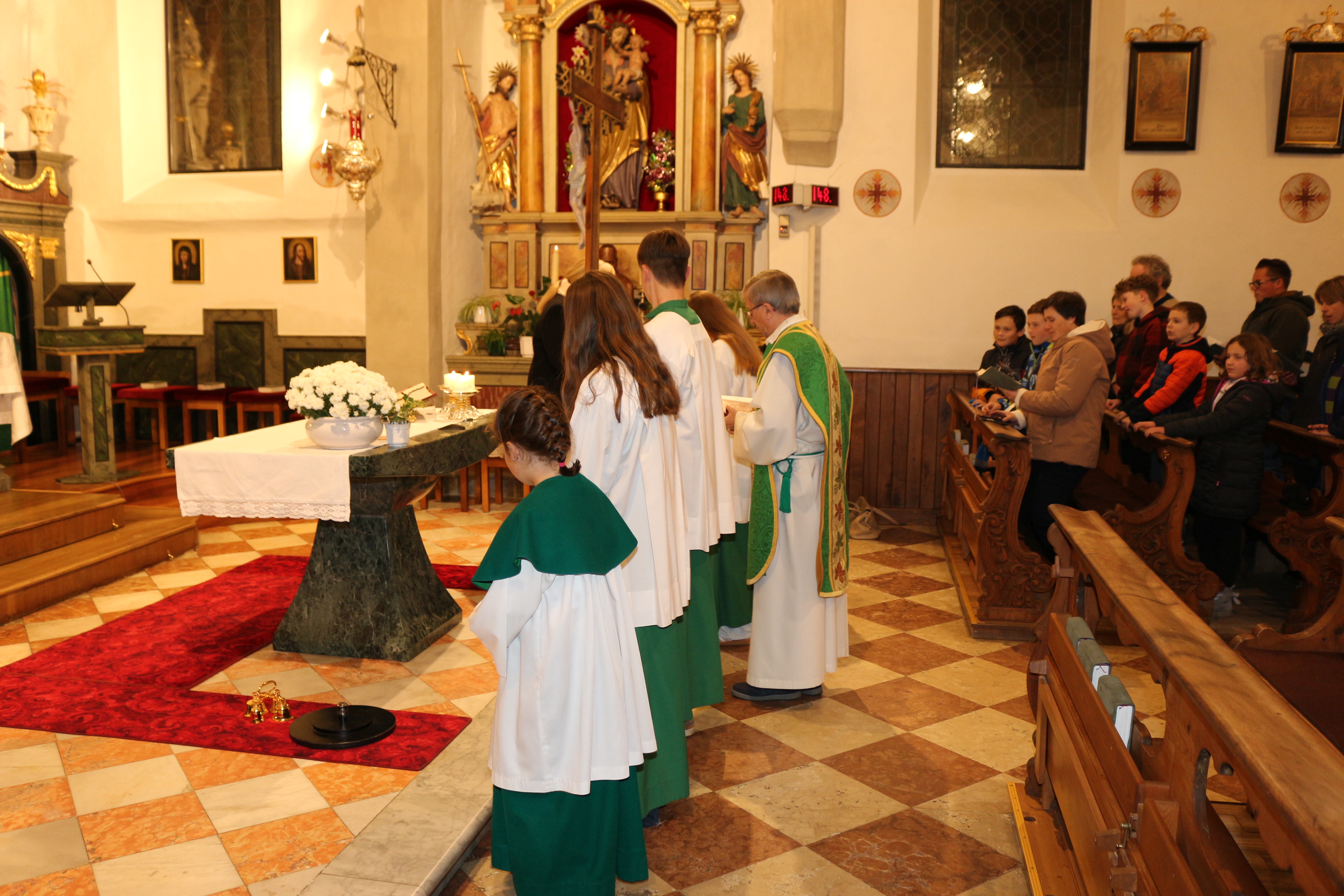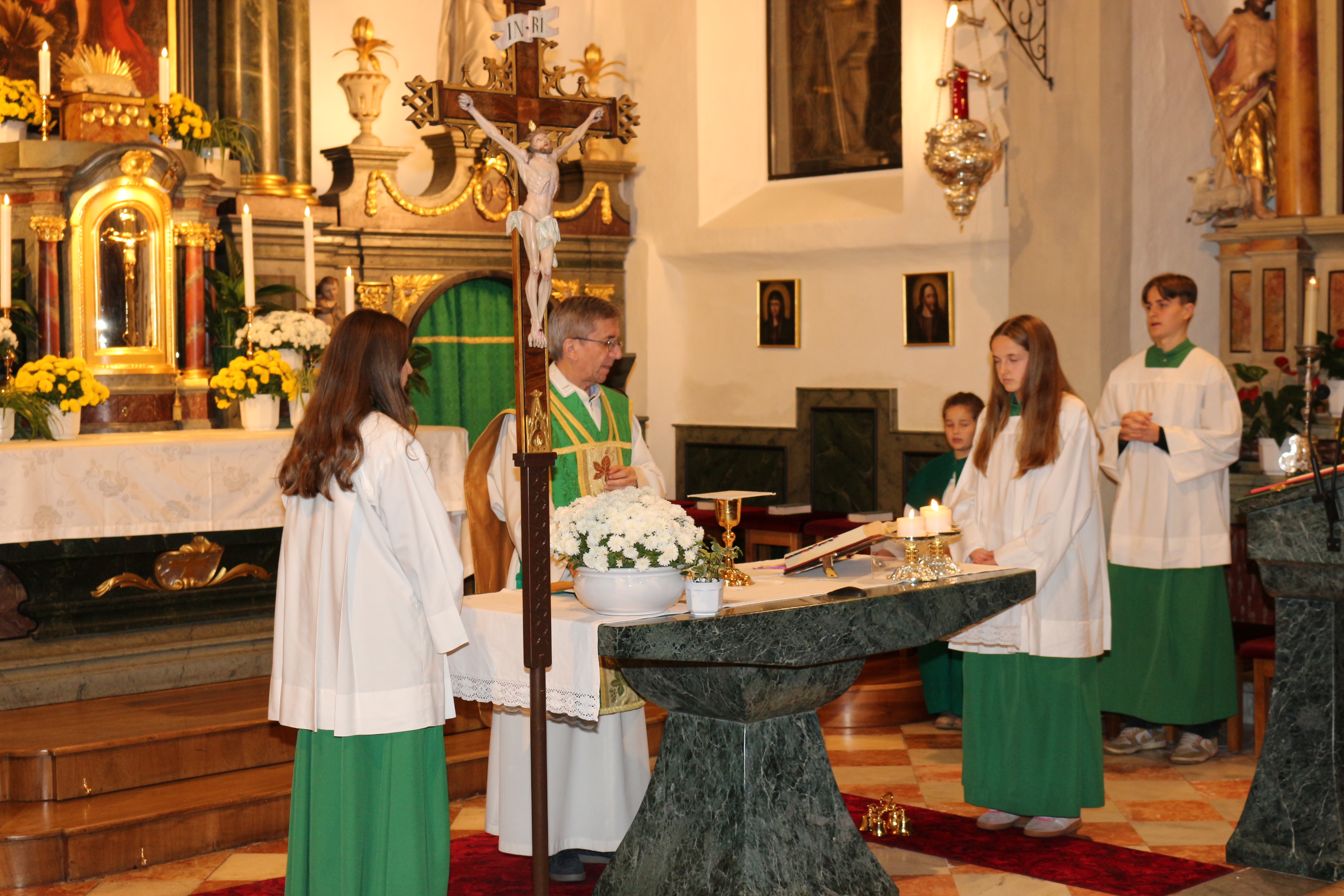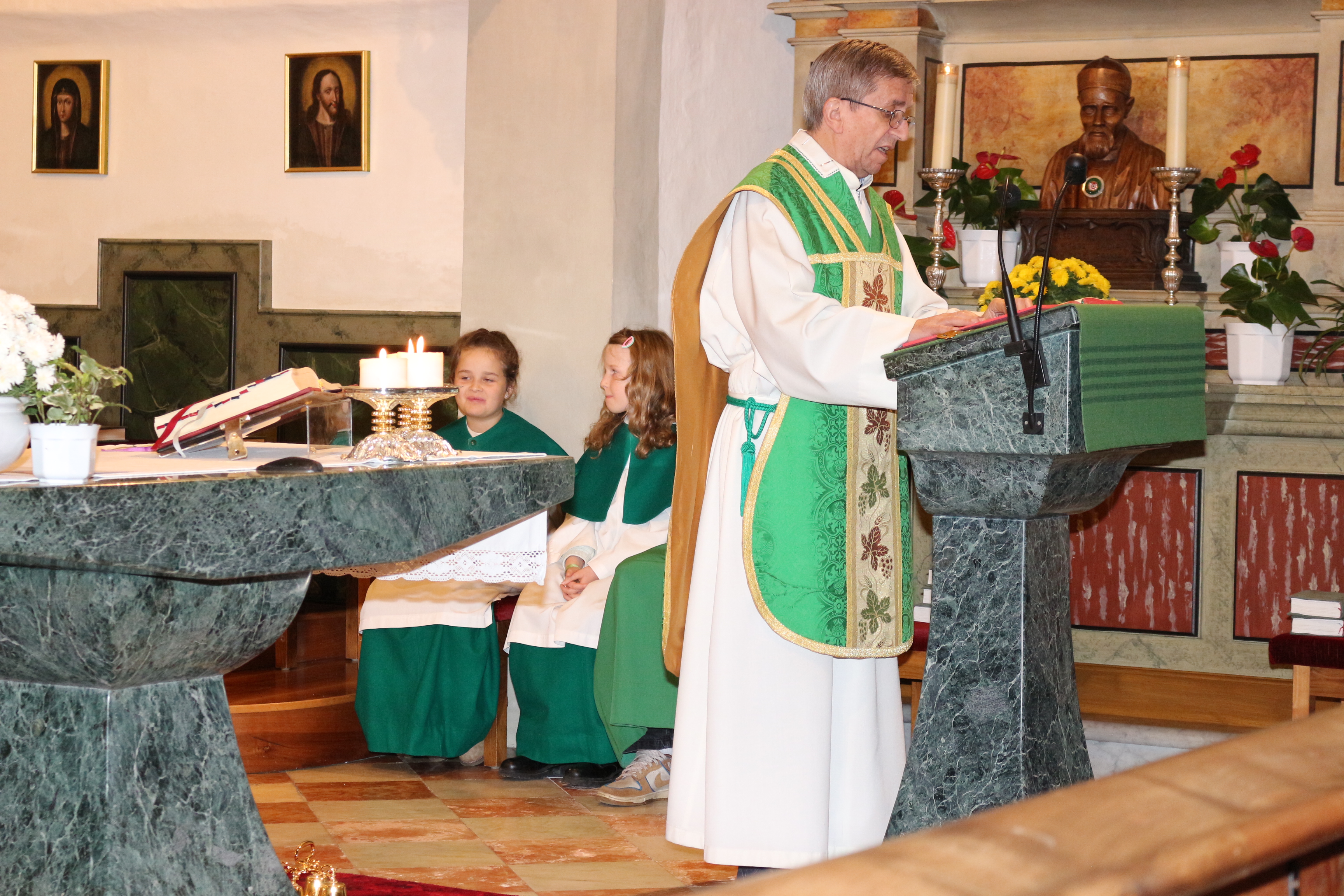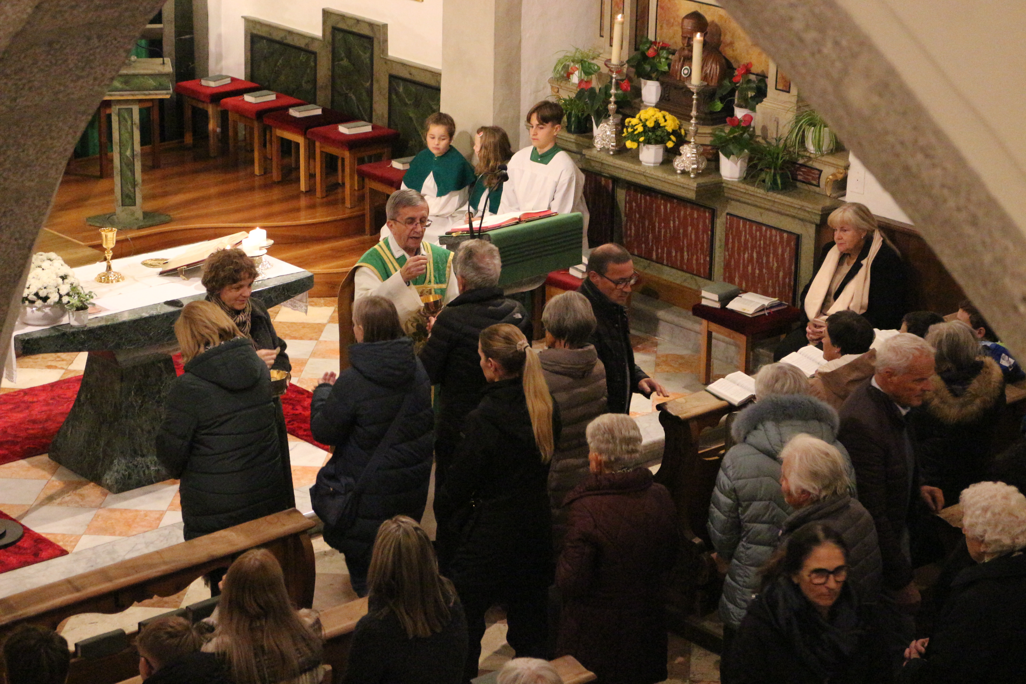 An Sonntag, 12. Oktober haben wir Erntedank gefeiert und in diesem Rahmen der langjährigen, nunmehr pensionierten Religionslehrerin Margith Watschinger eine kleine Ehrung zuteil kommen lassen. 33 Jahre lang hat sie in vahrn Religionsunterricht gehalten und in dieser Zeit stets auch die Kinder auf die Erstkommunion vorbereitet. Für diesen Dienst an den Kindern und an der Pfarrgemeinde sind wir ihr zu großem Dank verfplichtet.